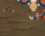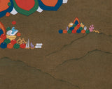Created in our studio by skilled Himalayan artists, this original hand-painted Dzambhala thangka employs traditional techniques. It is painted on cotton canvas using vibrant acrylic colors and embellished with genuine 24K gold. Rooted in the Tibetan Karma Gadri, the thangka features acrylic pigments that ensure vivid saturation, causing each detail to glow. It beautifully combines sacred iconography with elegance, making it perfect for spiritual practices, altar placements, or enhancing sacred spaces. The genuine 24K gold is meticulously applied to highlight his ornaments, crown, and offerings, imparting divine radiance and texture.
