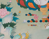 Dzambhala, the Buddha of Wealth, is a prominent deity associated with prosperity, abundance, and protection from poverty. In Buddhist tradition, his blessings are invoked to remove financial obstacles and attract both material and spiritual wealth. His luminous appearance symbolizes prosperity, and his compassionate pledge guarantees that wealth is allocated wisely for the good of all beings. Owning his thangka is believed to bring both worldly abundance and inner harmony, making it a valued centerpiece for meditation areas, shrines, or homes seeking spiritual balance.