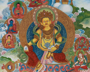 Yellow Dzambhala, The Wealth Deity Thangka | Prosperity Thangka With Five Dhyani Buddhas