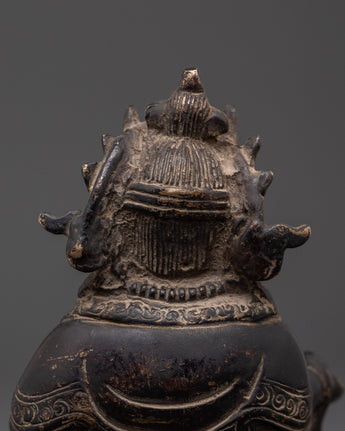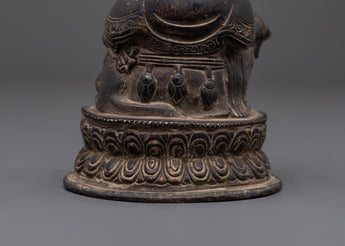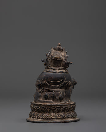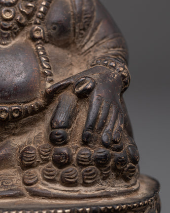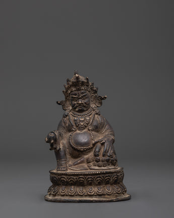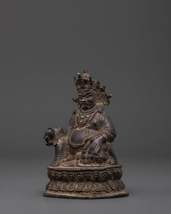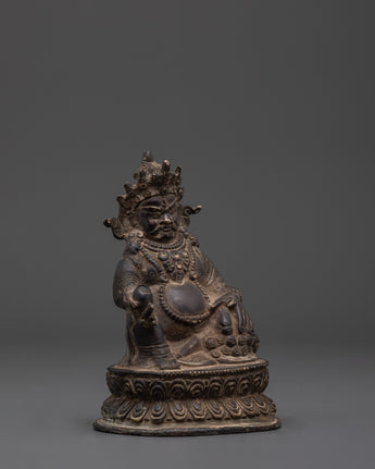 The Buddhist Wealth Deity Dzambhala statue is meticulously crafted to showcase his iconic posture and serene expression, embodying divine authority and benevolence. As the revered God of Wealth in Buddhist tradition, Dzambhala is believed to hold the treasures of fortune and is frequently invoked during rituals to attract prosperity and abundance. This oxidized copper statue serves as both a devotional object and a sophisticated decorative piece, designed to enrich any sacred space. By displaying this statue, you invite blessings of success, financial stability, and generosity into your life, fostering an environment of spiritual and material growth. Whether used in meditation, placed on an altar, or given as a meaningful gift, this statue inspires confidence and abundance while deepening your connection to timeless Buddhist wisdom.