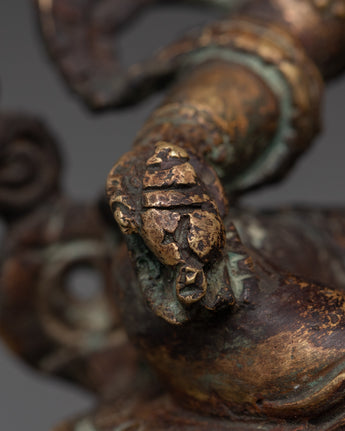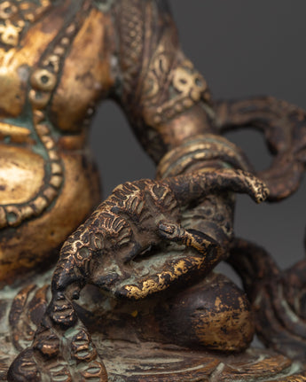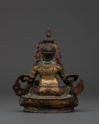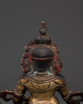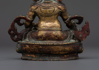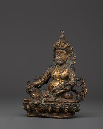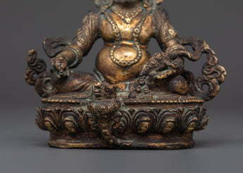 The rich craftsmanship on this handcrafted copper Dzambala emphasizes the deity's regal stance, emblems of prosperity, and caring countenance. The statue is ideal for a meditation area, personal shrine, or as a symbolic focal point in your home office. This copper statue brings stability, prosperity, and good vibes into your surroundings, whether you use it as a Feng Shui wealth enhancer or as part of your daily spiritual practice. This copper Dzambhala statue, crafted for Tibetan Buddhist devotees, collectors, and spiritual seekers, embodies the ideal fusion of artistic talent and profound spiritual significance.