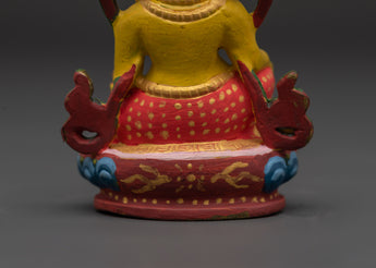 The statue's elaborately detailed design depicts Dzambala sitting in a royal position while clutching the jewel-spouting mongoose, a customary representation of unending prosperity. This item is a unique spiritual relic that attracts prosperity, abundance, and financial stability while radiating a serene aura due to the combination of traditional workmanship and spiritual symbolism. Whether put in your living area, office, or spiritual corner, this Tibetan fortune deity statue complements the ambiance with its divine aura and sacred meaning. For practitioners, spiritual searchers, or anybody else in need of blessings for prosperity and good fortune, it is a considerate present.