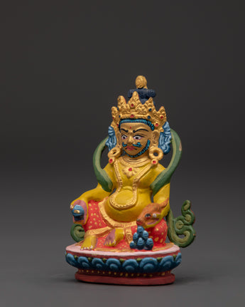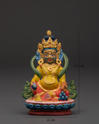 Discover divine prosperity with this Copper Made Wealth Deity Dzambala statue, a powerful spiritual symbol revered in Tibetan Buddhism. Standing at a compact yet captivating size of 8.5cm x 6cm wide and weighing 0.17 kg, this statue is ideal for home altars, meditation spaces, or workspaces where prosperity is desired. Dzambala (also spelled Jambhala) is known as the Buddhist god of wealth and guardian of spiritual and material abundance. Beautifully handcrafted from high-quality copper and adorned with rich acrylic color detailing, this sacred figurine is both a spiritual companion and an elegant piece of art.