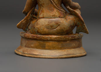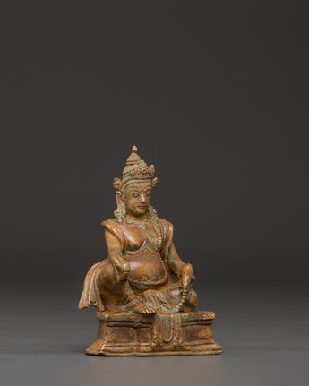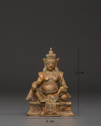 Dzambhala Kuber, a Buddhist wealth deity, represents wealth and prosperity. It is beautifully handmade, 11cm tall and 8cm broad, and constructed of copper. The artwork portrays Dzambhala, the famous Tibetan prosperity deity, in an inviting stance, representing abundance and generosity. This little figurine is ideal for spiritual altars, home décor, or as a thoughtful gift for wealth seekers.