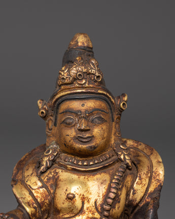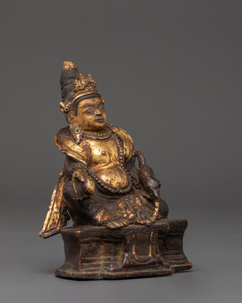 Handcrafted Dzambhala Figurine | Copper, Gold Plated with Antique Finish