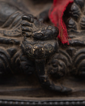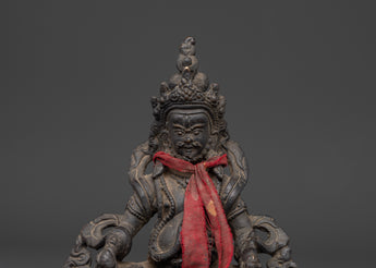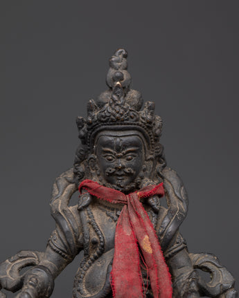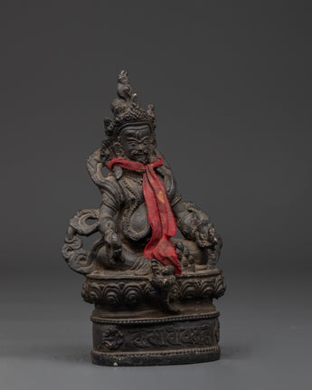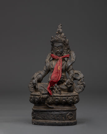 Dzambhala is a protective deity associated with wealth and prosperity. Many forms and traditions are associated with this wealthy deity, but he is usually depicted as yellow and holding a mongoose in his left hand. This statue has accurate traditional iconography and fine details.