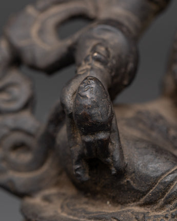 The Dzambhala statue is made with meticulous attention to detail, and the detailed classic finish shows the beauty of the copper material. This mighty deity is renowned in Tibetan Buddhism for his ability to bestow material wealth and spiritual abundance upon those who seek his blessings. This statue is ideal for meditation rituals or as a decorative piece, representing the importance of endurance, wisdom, and generosity in the quest for achievement. With its deep spiritual meaning and classic craftsmanship, this Dzambhala statue is a must-have for anyone looking to boost their fortune and success.