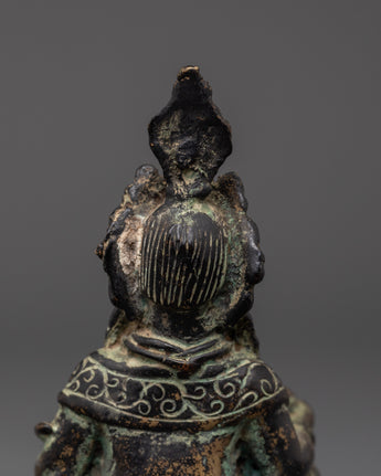 Dzambhala, the Tibetan deity of wealth, is revered for his ability to bring financial prosperity and remove obstacles to abundance. The antique finish enhances the statue’s charm, giving it a unique, classic look while preserving its spiritual energy.
