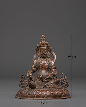 This handcrafted Dzambhala sculpture depicts the revered Buddhist wealth deity, known as the protector of prosperity and riches. In Tibetan tradition, Dzambhala is said to remove financial barriers while providing the benefits of stability, fortune, and charity. In a seated position, his presence exudes both strength and compassion, making this figure an appropriate centerpiece for meditation rooms, altars, and spiritual collections.
