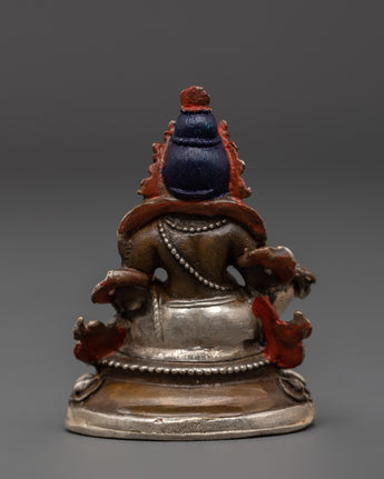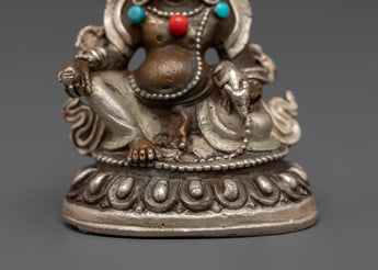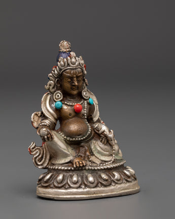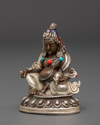 Attract prosperity and abundance with this exquisite Handmade Dzambhala Wealth Deity Statue, expertly crafted from silver-plated copper. Representing Dzambhala, the Tibetan Buddhist deity of wealth, this sacred figure is revered for bringing fortune, generosity, and spiritual richness. Enhanced with vibrant turquoise and coral gemstones, this compact yet powerful statue is a divine addition to your spiritual space, shrine, or meditation altar.