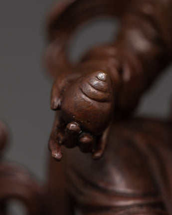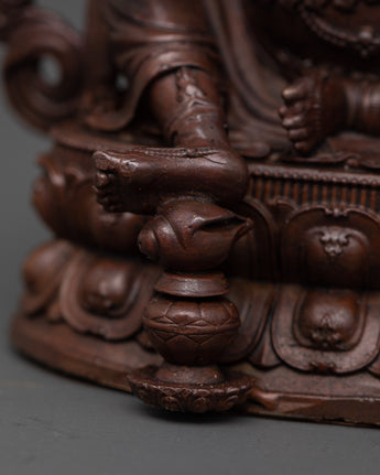 Oxidized Copper Dzambala Holding Conch | For Prosperity & Spiritual Altar Decor