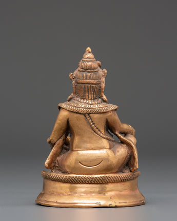 This Statue of Dzambhala is a finely handcrafted piece of Tibetan artistry, standing 11cm tall, 7.5cm wide, and weighing 0.36 kilograms. Dzambhala, the Tibetan deity of wealth, is revered for bestowing prosperity and abundance upon those who seek his blessings. Made of pure copper, this statue exudes strength and a heavenly presence, making it an excellent addition to your Tibetan altar, meditation space, or sacred location.