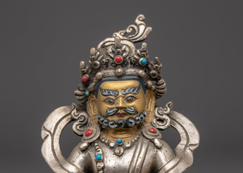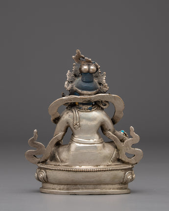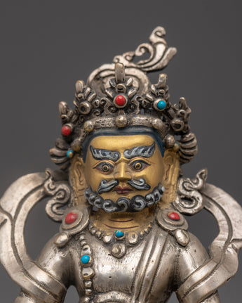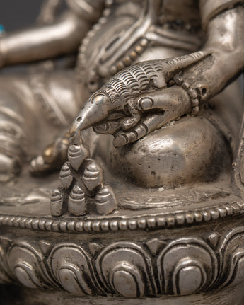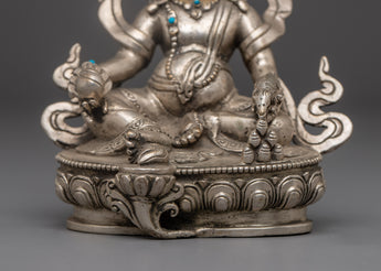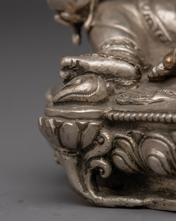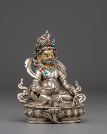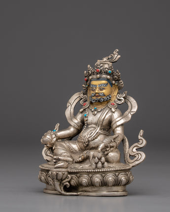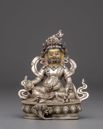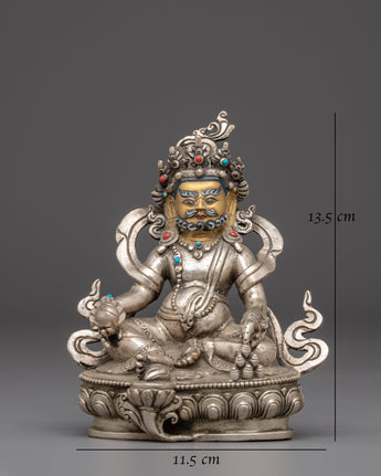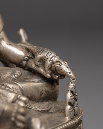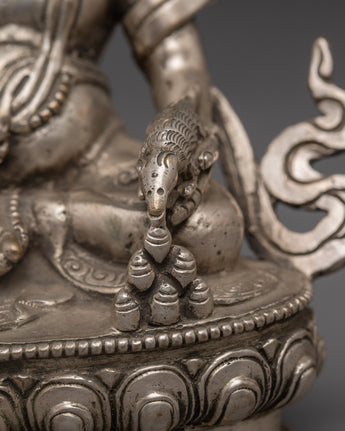 Handmade Statue of Wealth Deity Dzambhala | Silver Plated Artwork