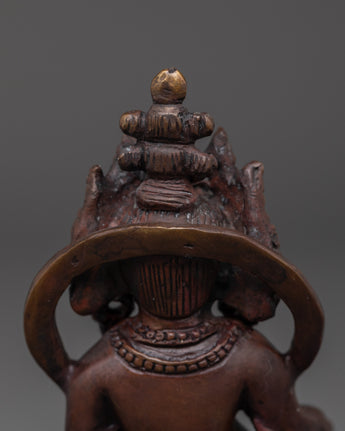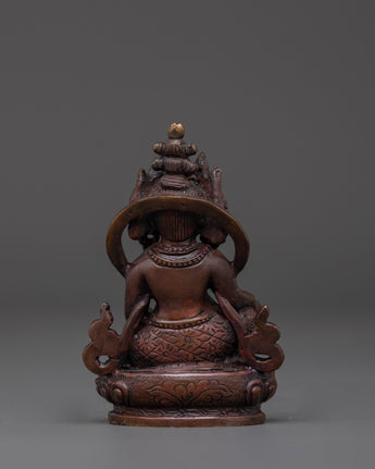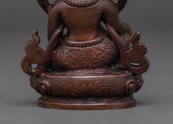 Dzambhala, the Buddhist god of wealth, is highly revered for his ability to bring material and spiritual prosperity. The oxidized copper finish gives the statue a sacred look. This 9cm statue is perfect for those seeking to enhance their home or meditation space with positive energy and abundance. Its detailed craftsmanship and spiritual significance make it a meaningful addition to any collection of Buddhist art.
