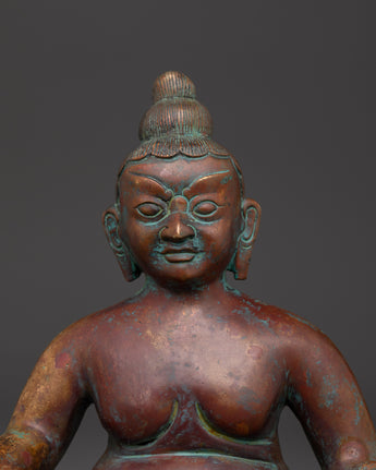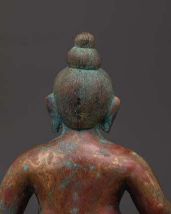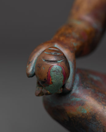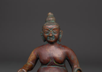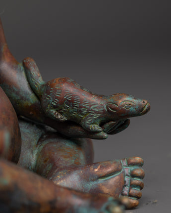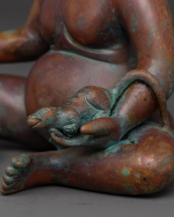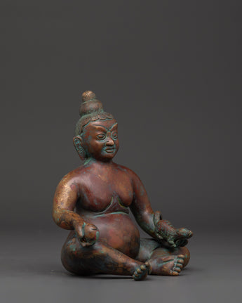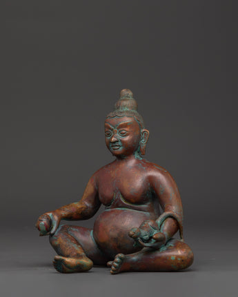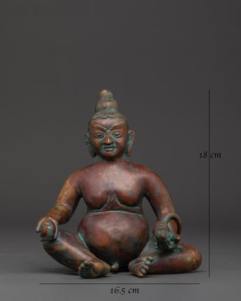 The Oxidized copper finish gives depth and authenticity to the statue's classical style. Every aspect, from the delicate expression to the symbolic motifs, has been carefully sculpted by expert artisans. This Tibetan Dzambhala statue is ideal for Vajrayana Buddhists and spiritual art lovers, infusing your area with divine prosperity energy. Incorporate this Tibetan prosperity deity, an oxidized copper riches god, and a Buddhist altar sculpture into your spiritual practice to invoke blessings of abundance and protection.