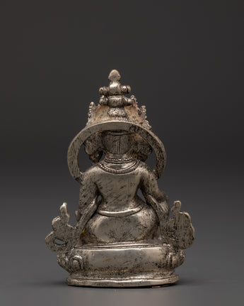 In addition to being a potent spiritual symbol, this silver-plated Tibetan Wealth deity statue is a stunning ornament that blends well with both contemporary and traditional settings. This Dzambala copper figure promotes spiritual development and money manifestation and is perfect for Buddhist altars, feng shui renovations, or as a daily reminder of riches.