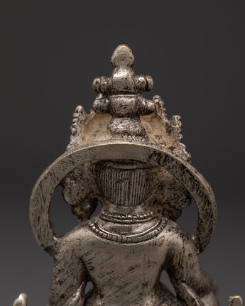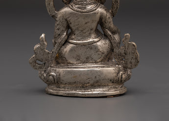 The statue's visual appeal is enhanced by its silver plating, which reflects purity, divine energy, and a high vibrational frequency. This makes the statue a significant instrument for meditation, feng shui arrangements, and ceremonies. A mongoose gushing beautiful pearls, a representation of unending prosperity and giving, is held by Dzambala. Whether your goal is worldly success or spiritual equilibrium, this silver-plated Tibetan Dzambala statue infuses your life with exquisite craftsmanship and sacred meaning. For those who meditate, seek spirituality, or collect Buddhist sculptures of deities, it's the ideal present.