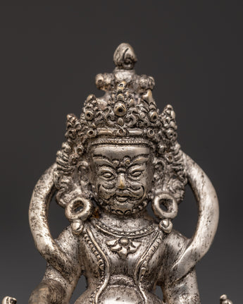 Tibetan Wealth Deity Dzambala | Silver-Plated Buddhist Statue