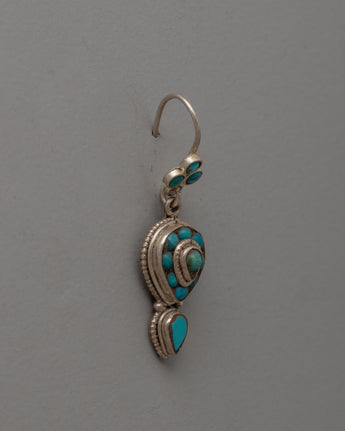 These exquisite handcrafted, meticulously carved, dangle turquoise earrings will elevate your look. These earrings, which are made of 92.5% pure silver and 7.5% copper, are made to be durable without sacrificing style. The original turquoise stones, which have been expertly inlaid to accentuate their inherent beauty, are the focal point of these earrings. These earrings, with their secure fishhook fastening and lightweight design, are ideal for both special events and daily wear.