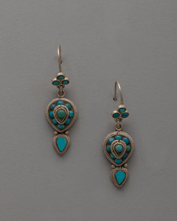 Dangle Turquoise Earrings | Exquisite Silver Earrings with Inlaid Turquoise Stones