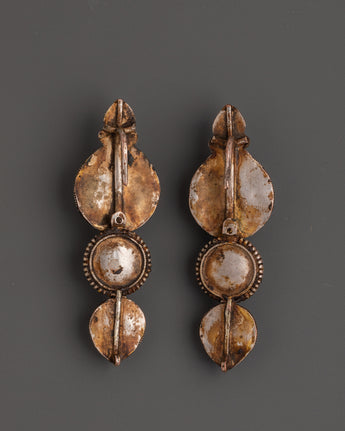 This set of silver-polished copper earrings is perfect for festivals, weddings, or everyday wear. It is designed for individuals who value bohemian jewelry and cultural elegance. These earrings are a versatile addition to both classic and modern ensembles because of the stunning contrast between the polished metal and the vivid artificial stones. These earrings convey uniqueness and beauty, whether you're dressed up for a cultural event or just adding flair to your outfit.