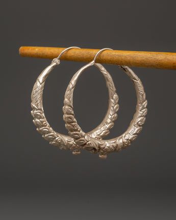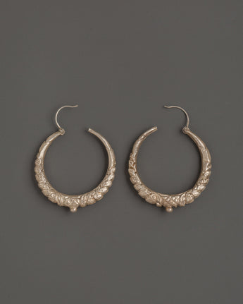 Handcrafted Tibetan Hoop Earrings Set | Traditional Silver Earrings