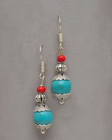 Elevate your look with these stunning Dangle Turquoise Earrings, which are expertly made to embody the aura of boho elegance. These earrings, handmade from white metal and delicately silver plated, exhibit a timeless charm.