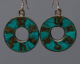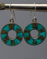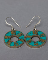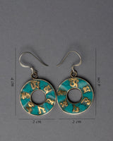 Traditional Tibet Earrings With Turquoise | Om Mani Padme Hum Inlay Earrings