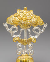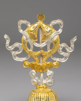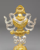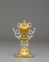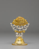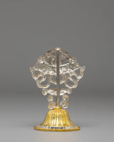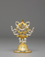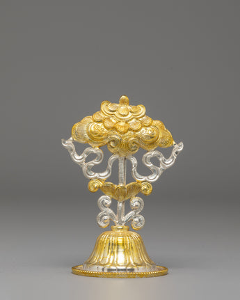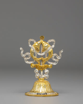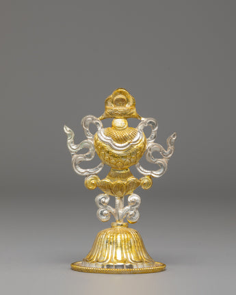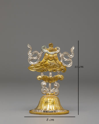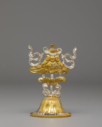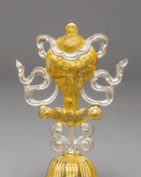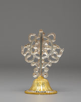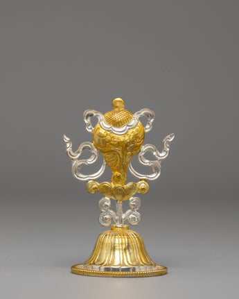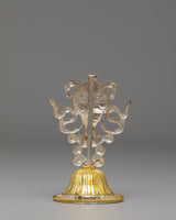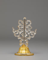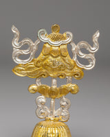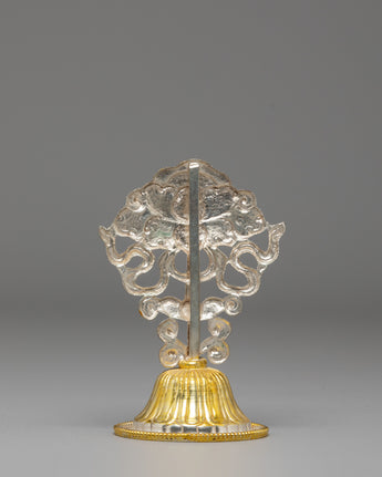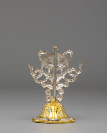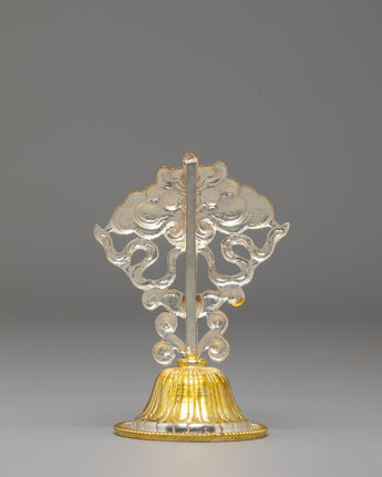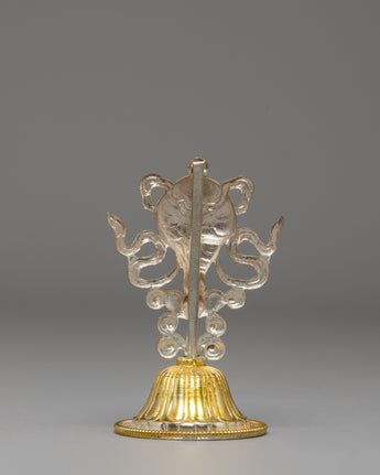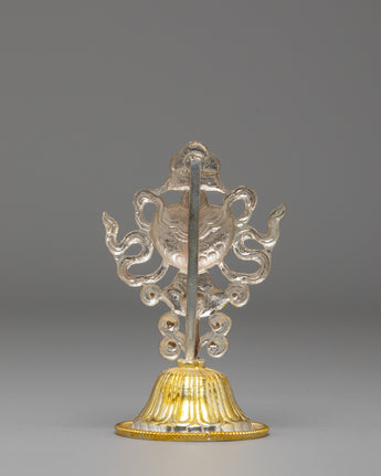 The Tibetan 8 Auspicious Symbols, renowned for their profound spiritual and cultural significance, are meticulously crafted with precision. These symbols feature a copper body with silver and gold plating, giving them a refined and elegant appearance. Each symbol is small, weighing 0.058 kg and measuring 11 cm in height and 8 cm at the base. The sculpture weighs a total of 0.50 kg, making it substantial yet portable.