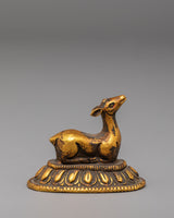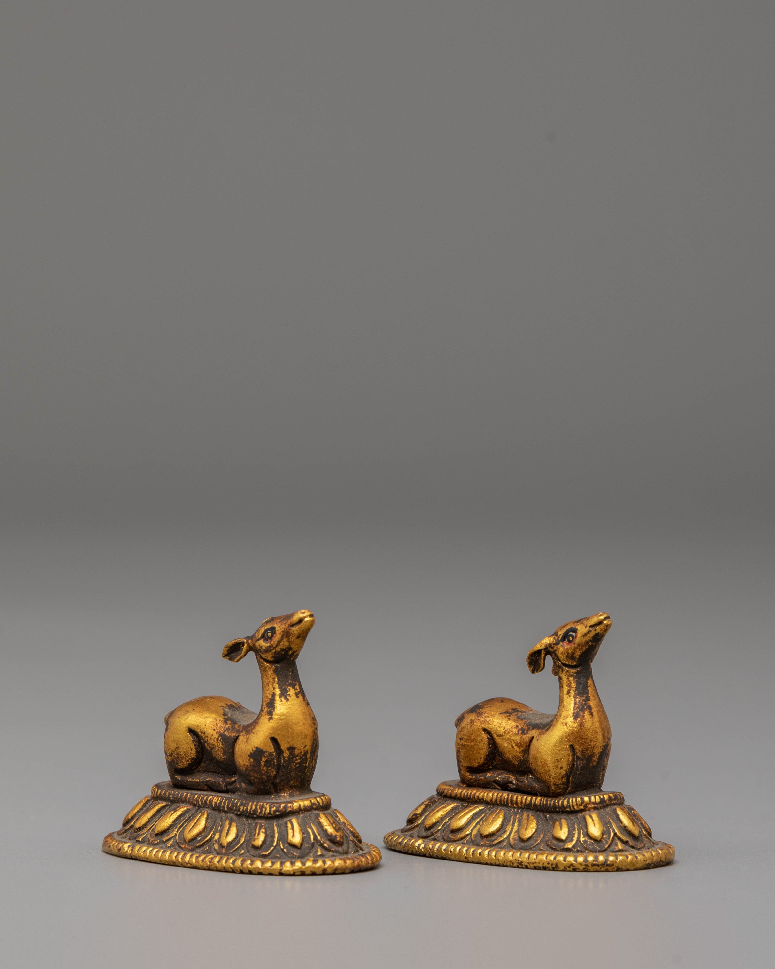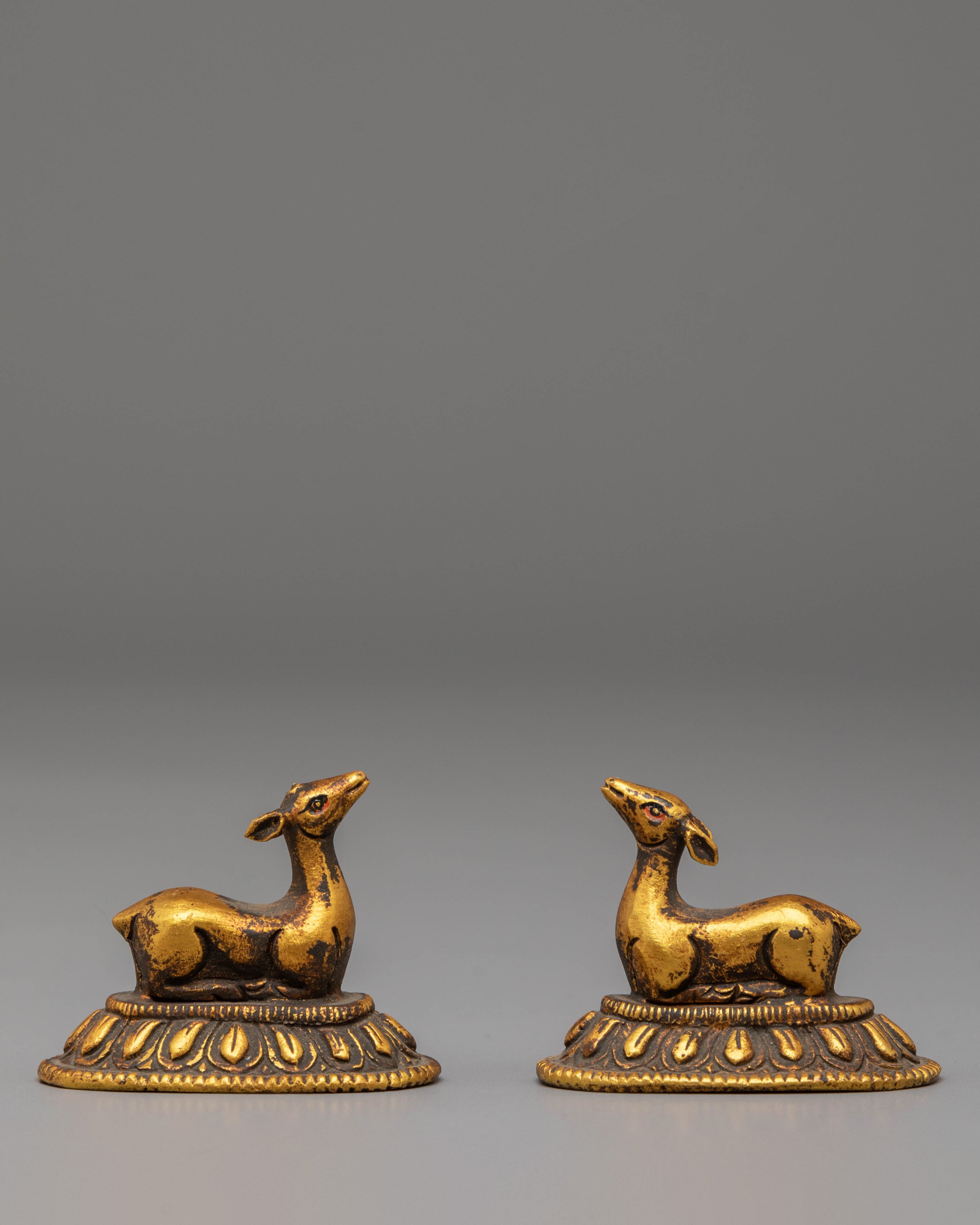 The two deer—traditionally a male and female pair—represent the peaceful atmosphere of Deer Park in Sarnath, where the Buddha first taught the Dharma. Symbolizing harmony, receptivity, and a gentle heart, they complete the set as a reminder of compassion and inner tranquility. Lightweight yet visually profound, this Dharma Wheel with Deer Set is perfect for practitioners seeking meaningful Buddhist décor or ritual tools that support meditation, teaching, and spiritual growth.