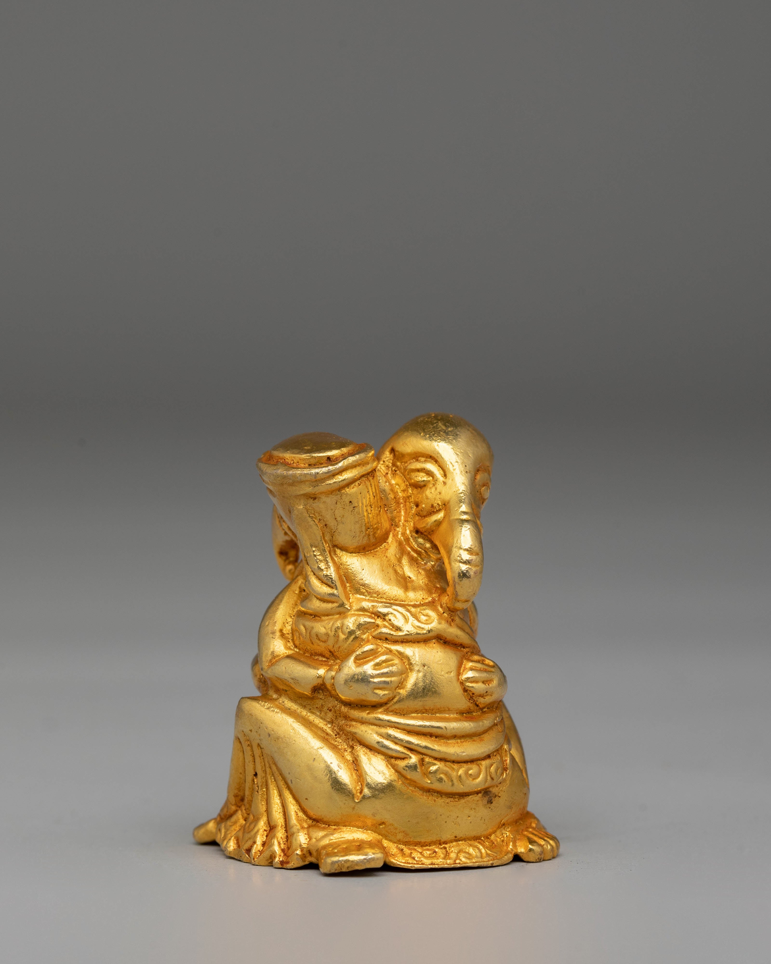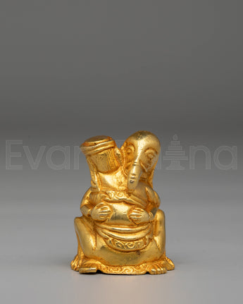 Elephants are revered in many cultures as symbols of strength, loyalty, and intelligence. In Hinduism and Buddhism, the elephant is also associated with the deity Ganesha, the remover of obstacles and the god of wisdom. This handcrafted sculpture features a unique pose of two figures symbolizing balance and harmony. The rich gold plating enhances its divine qualities, representing prosperity and good fortune. Whether displayed in your home or used in spiritual rituals, this artwork serves as a powerful reminder of the importance of wisdom, protection, and inner strength.