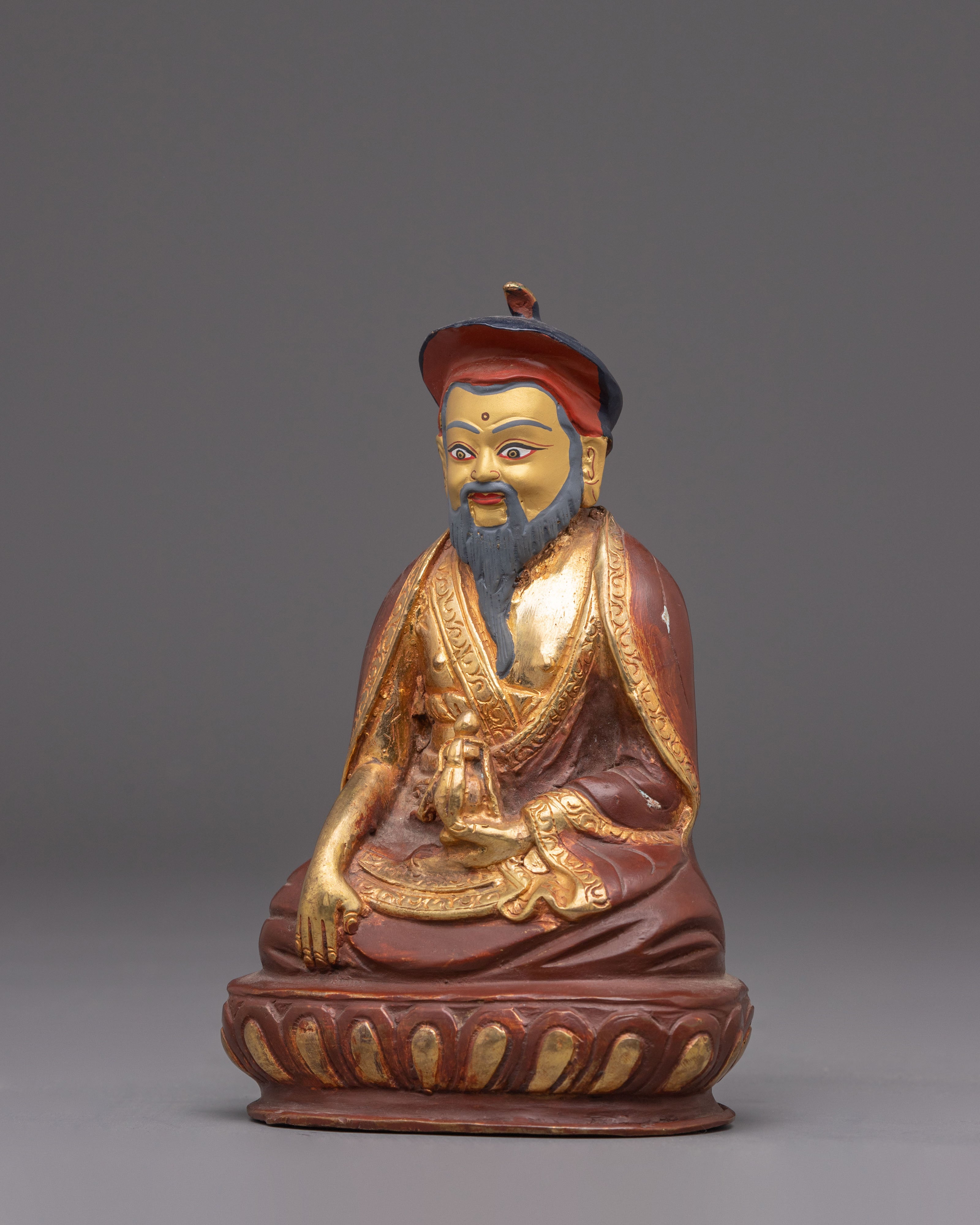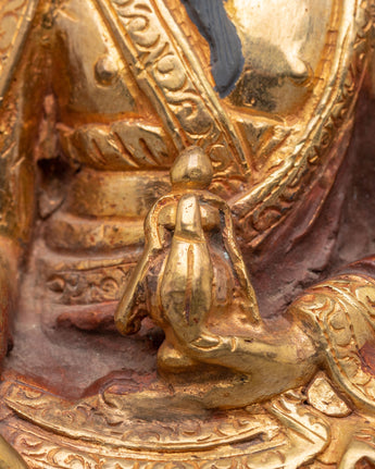 The gold-plated finish on the statue enhances its beauty, making it a perfect addition to any Buddhist altar, meditation space, or spiritual collection. The Guru Shapdum Statue serves as a powerful reminder of the qualities of compassion, wisdom, and insight that Guru Shapdum embodies. It is an essential spiritual tool for practitioners and collectors, invoking blessings, guidance, and spiritual protection for its owner.