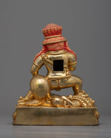Our Black Dzambhala sculpture / Asian Arts and Crafts is a powerful depiction of the Tibetan Buddhist deity of riches. This 2.20-kilogram statue, which stands 8.6" tall with a base measuring 7.4", is evidence of the craftsmanship of Nepalese craftspeople. An actual work of art to be admired and treasured, it is made from a copper body and is embellished with 24-karat gold gilding and acrylic paintings. This incredible Black Dzambhala statue is more than just a decorative piece; it represents spiritual success and abundance. Thanks to the gold plating and intricate craftsmanship, it is a beautiful addition to your shrine, office, or living room. This statue symbolizes the rich Buddhist tradition and cultural legacy and is a superb example of Asian arts and crafts.