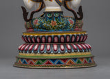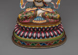 The Chenrezig White Figurine is a symbol of unending compassion and enlightenment that will help you enter the realm of compassionate wisdom. This statue is a tribute to the profound teachings of Chenrezig, having been carefully constructed with stunning attention to detail. Its majestic presence draws attention to itself, and its dimensions are 15.6 inches in height and 6.72 kg in weight. It is made of copper and has acrylic and gold decorations. It has a serene, heavenly air. Set it in your hallowed area and let its energy to lead you on your journey to enlightenment.