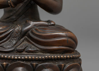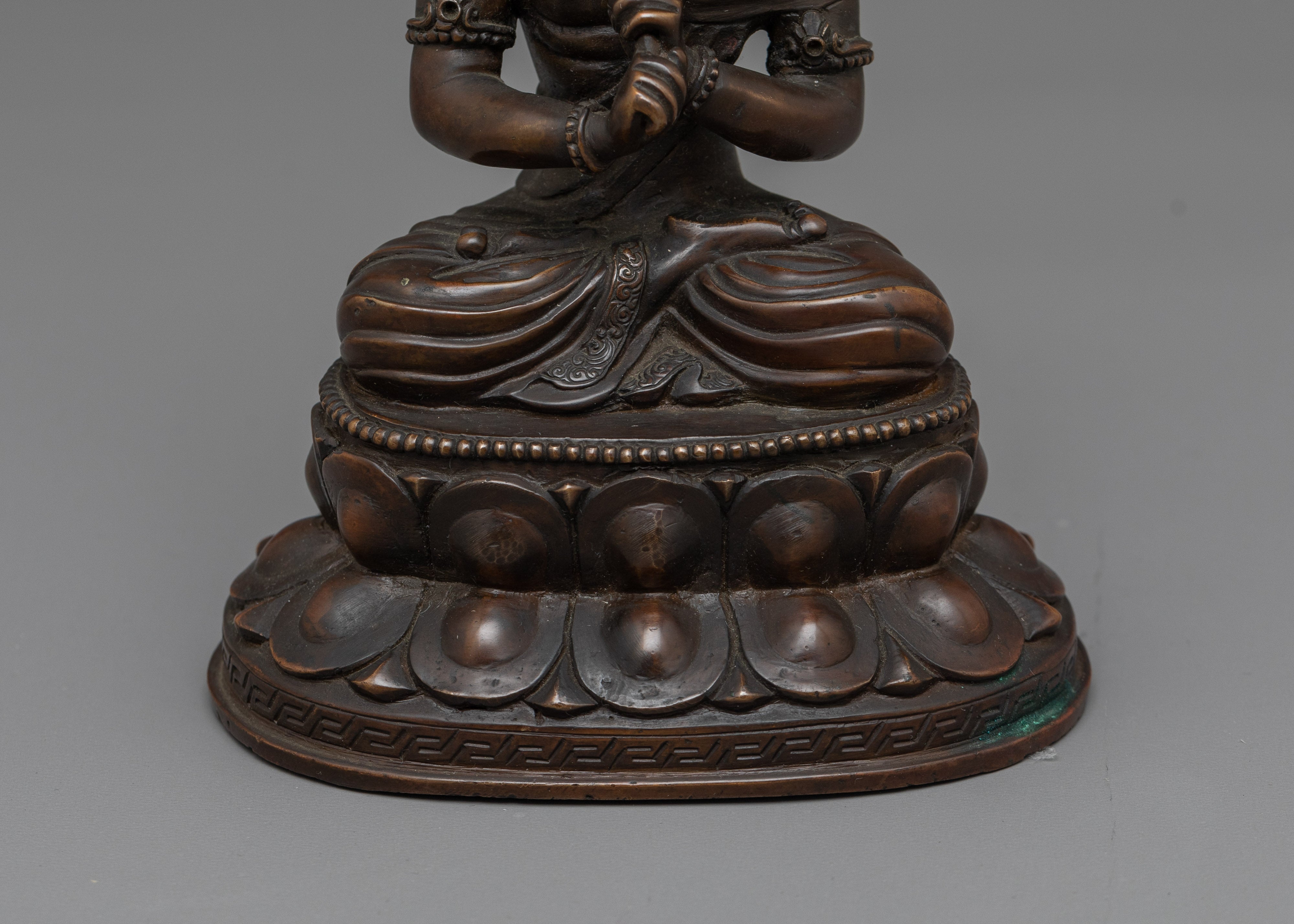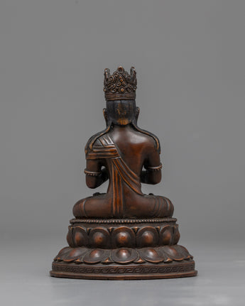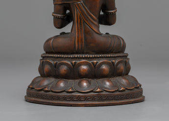 Embrace serenity in any setting with our Chinese Buddha Statue. This statue, which stands 6.1 inches tall on a sturdy 4.3-inch base, represents the spirit of harmony and peace. Made from premium oxidized copper, it exudes a feeling of enduring peace and spiritual serenity. An excellent focal point for meditation or mindfulness practice, the Buddha's stance and facial expression convey a sense of inner tranquility.