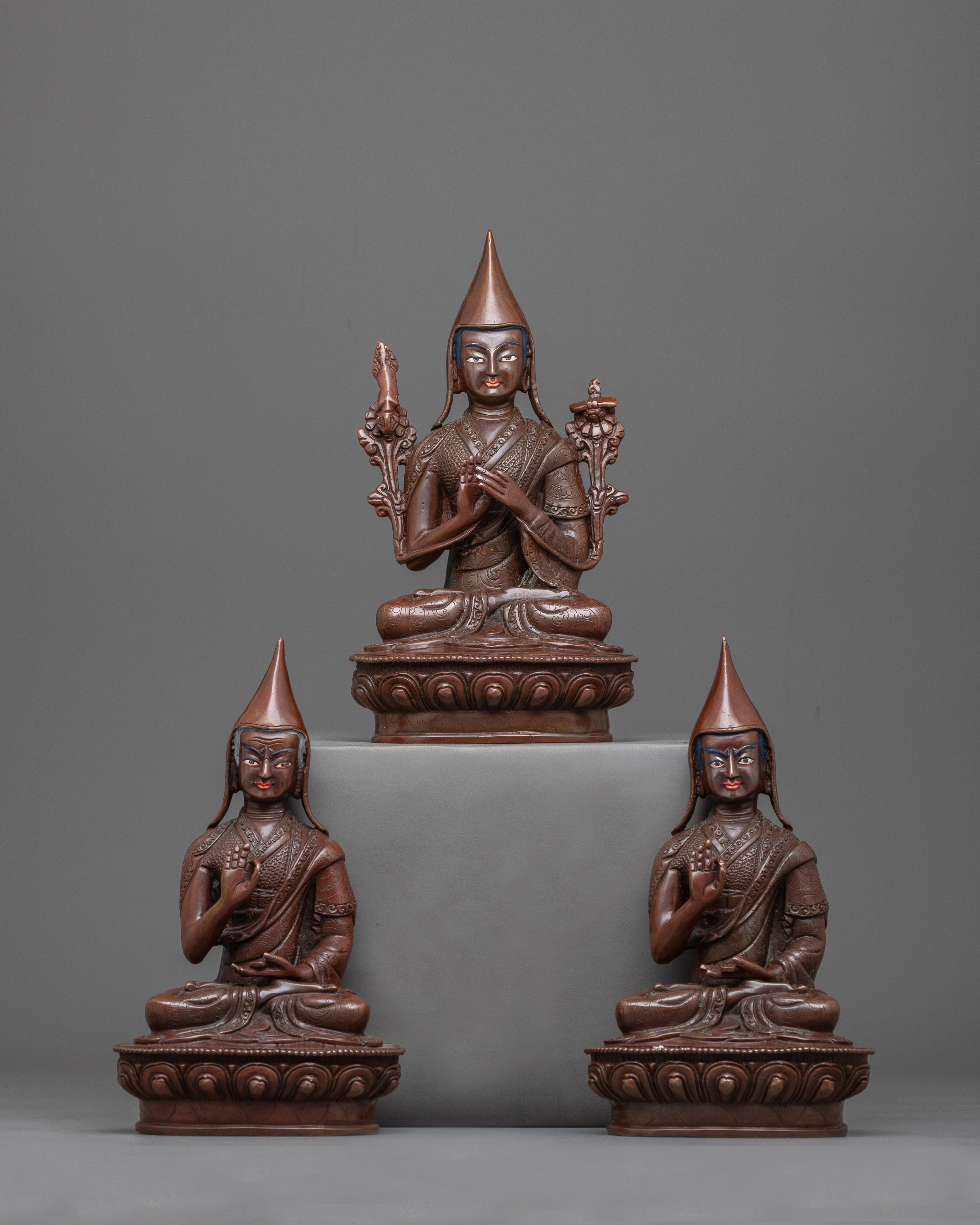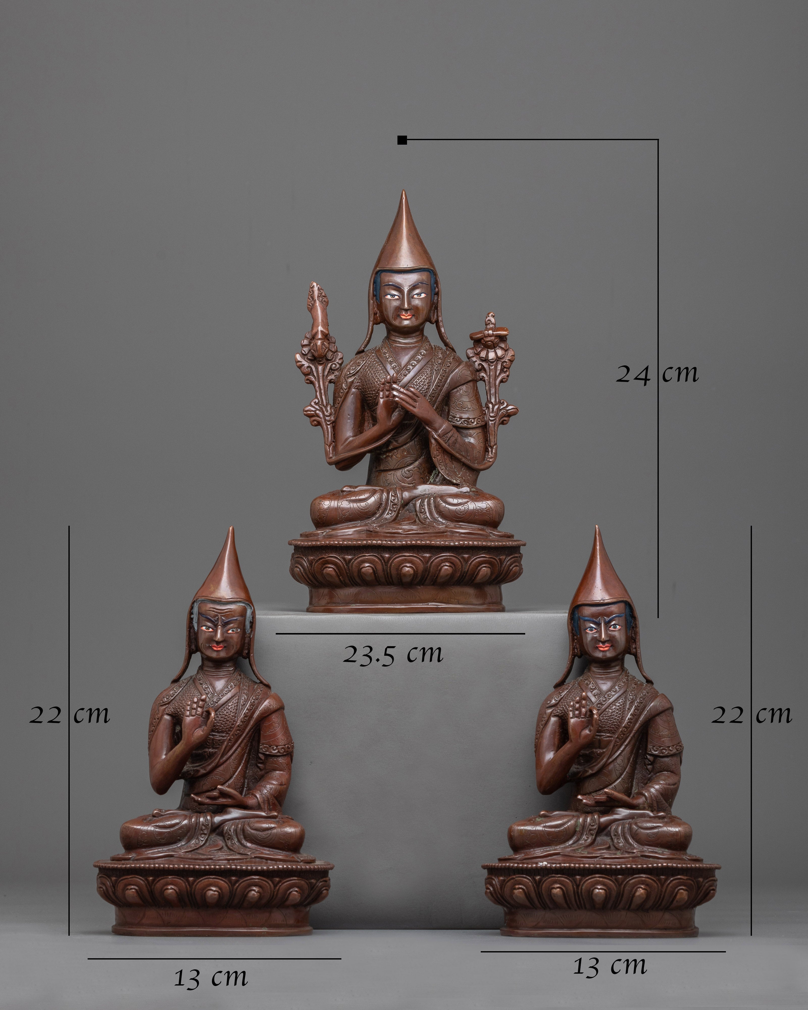 Copper Tsongkhapa With Disciples Statue | Handmade Statues of Buddhist Masters