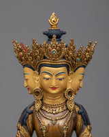 The Cosmic Buddha, Vairocana, is seen as the embodiment of the Buddhist doctrine of Emptiness. He represents the cosmic essence of awareness and knowledge. By adding this statue to your home or spiritual practice, you encourage cosmic enlightenment and a better understanding of the interconnection of the universe.