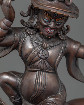 Tibetan Protector Damchen Garwa Nagpo Statue | Oxidized Copper Statue for Altar