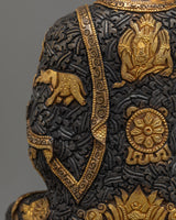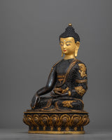 Handcrafted Shakyamuni Buddha Sculpture with Intricate Oxidized Copper Art