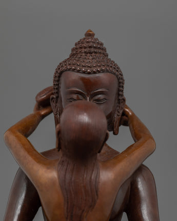 Samantabhadra, also known as the Dharmakaya or Buddha's truth body, depicts the primordial, unmanifest component of consciousness, free of all duality and limitation. His wife, who represents the pinnacle of wisdom, complements Samantabhadra's presence, symbolizing the unification of all things. This statue is not only an effective meditation tool, but it also serves as a reminder of Vajrayana Buddhism's deep teachings on the nature of reality and the path to enlightenment.