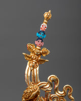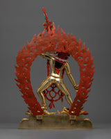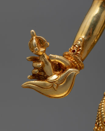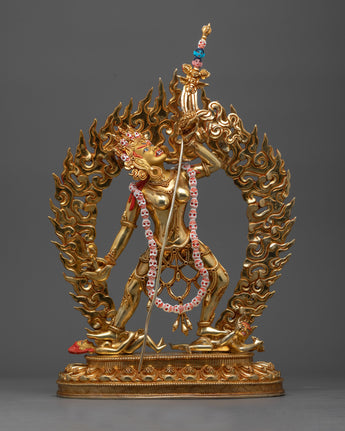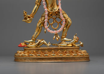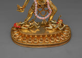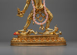 The Diva Vajrayogini Statue is a marvel of artistry, delicately carved from copper and gilded with real 24K gold. The elaborate facial features of how careful the master craftsmen were in their attempt to represent the celestial spirit of Vajrayogini. This monument exudes a sense of spiritual majesty that is enhanced with beautiful acrylic and gold paintwork, encouraging introspection and reverence. The Diva Vajrayogini Statue becomes a treasured focal point for any sacred place because to its exquisite craftsmanship.