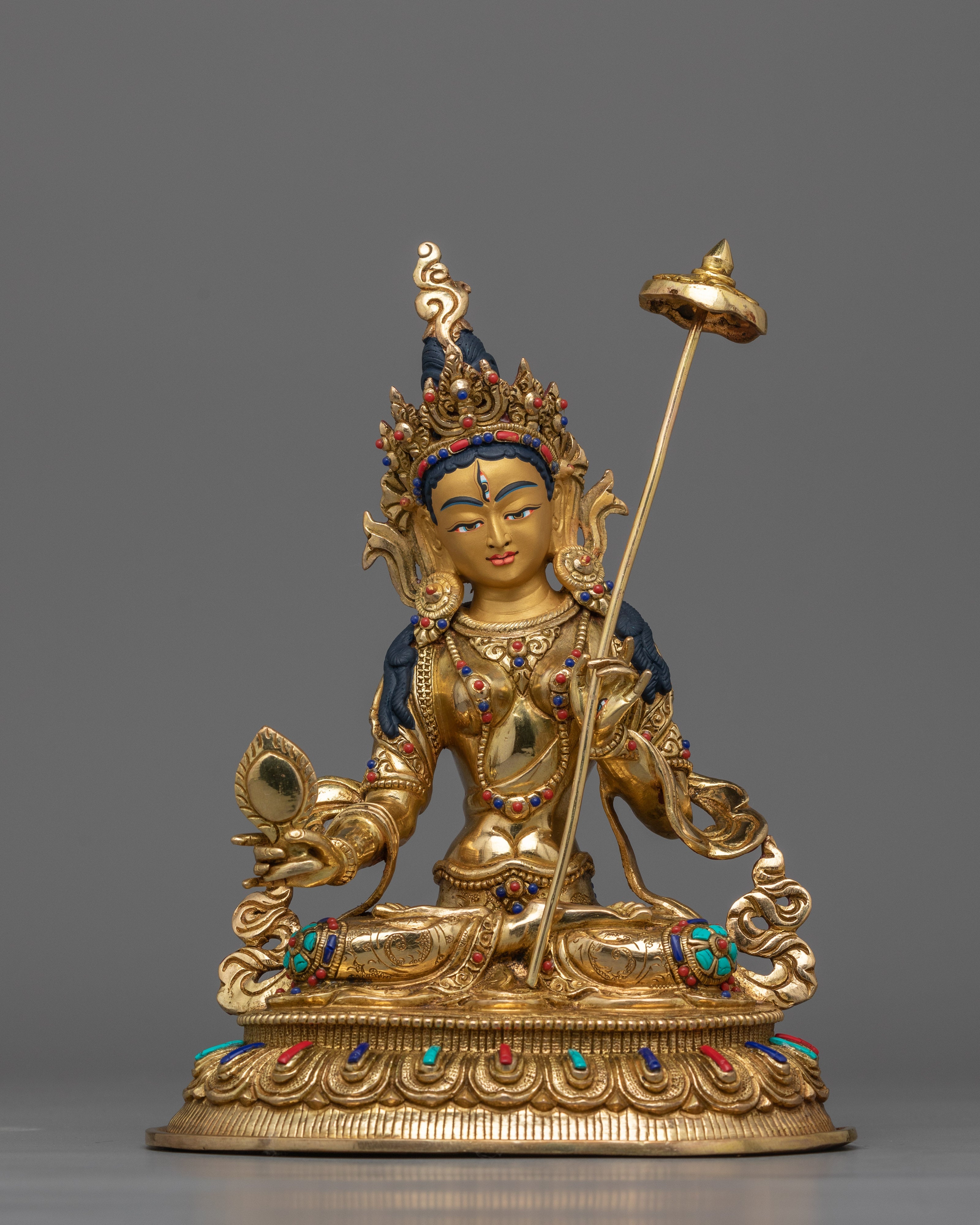Divine Radiance: Sita Dukar Statue | Hand-Carved Gemstone & 24K Gold Gilded