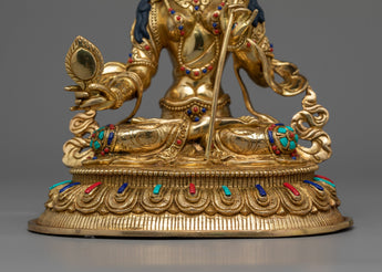 With its magnificent presence and stunning height of 9.25 inches (23.5 cm) and base width of 7.28 inches (18.5 cm), this statue is sure to draw attention. Made from 24K gold-gilded copper, every little detail is skillfully brought to life to create a work of art that is utterly magnificent and opulent.