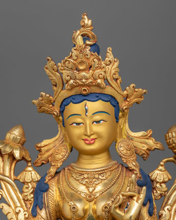 24K Gold Gilded Dolma Karpo White Tara Statue Traditionally Handcarved Dharma