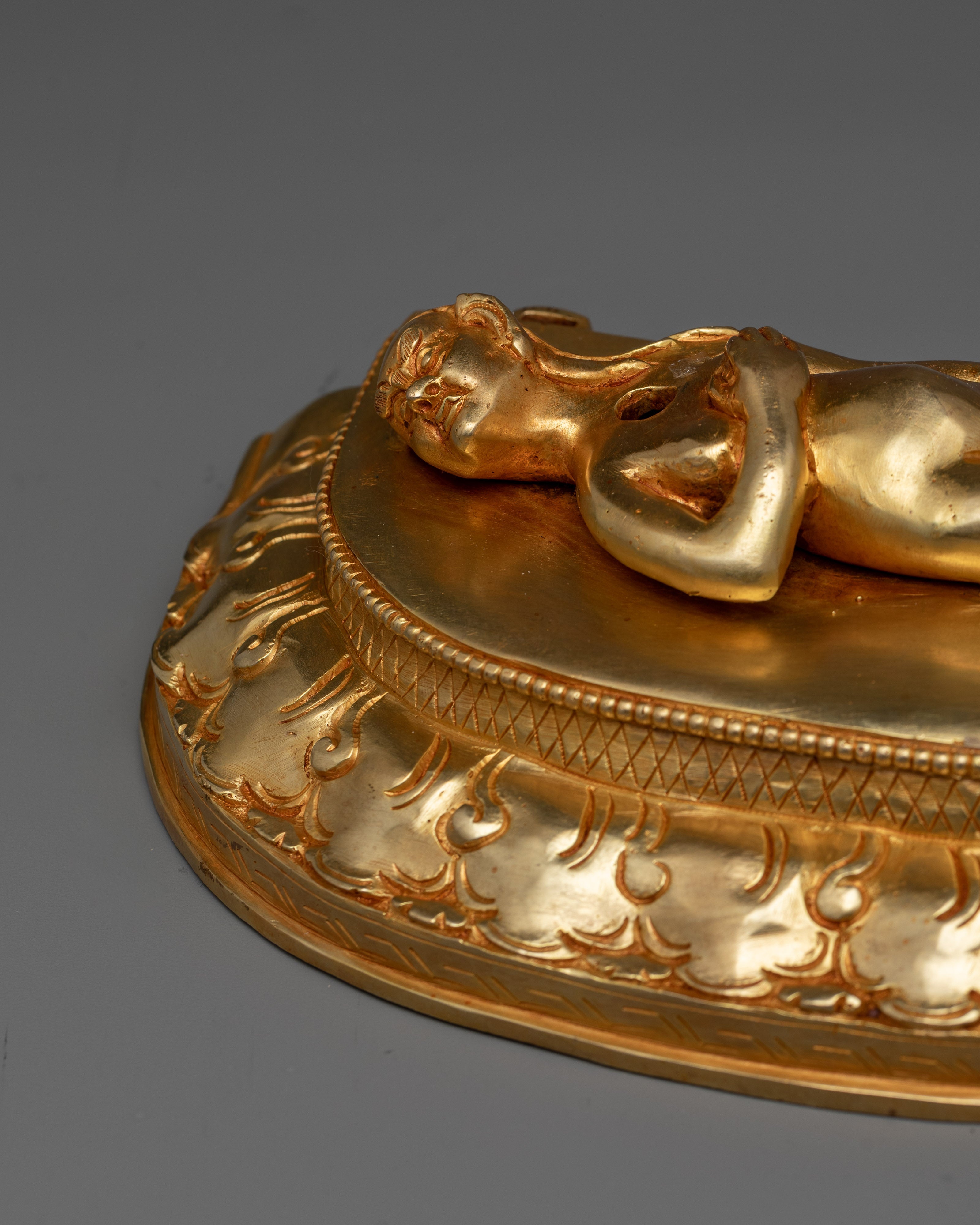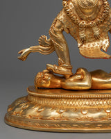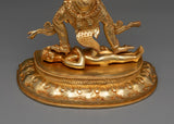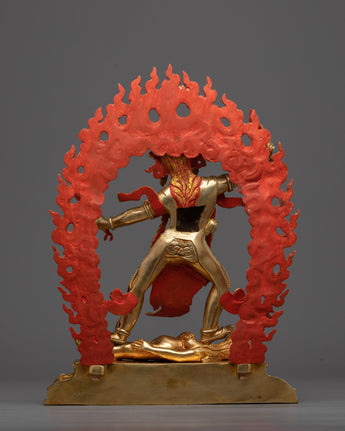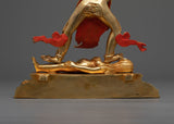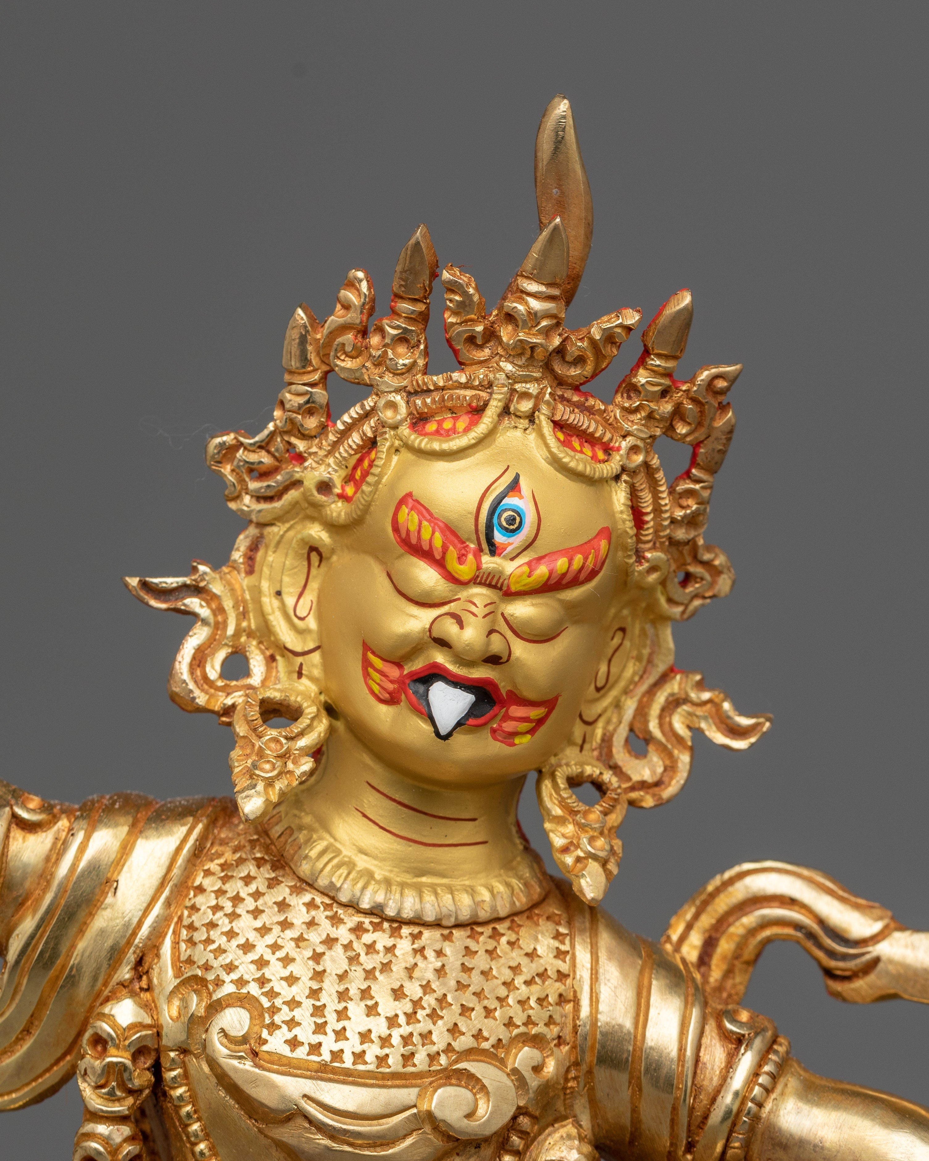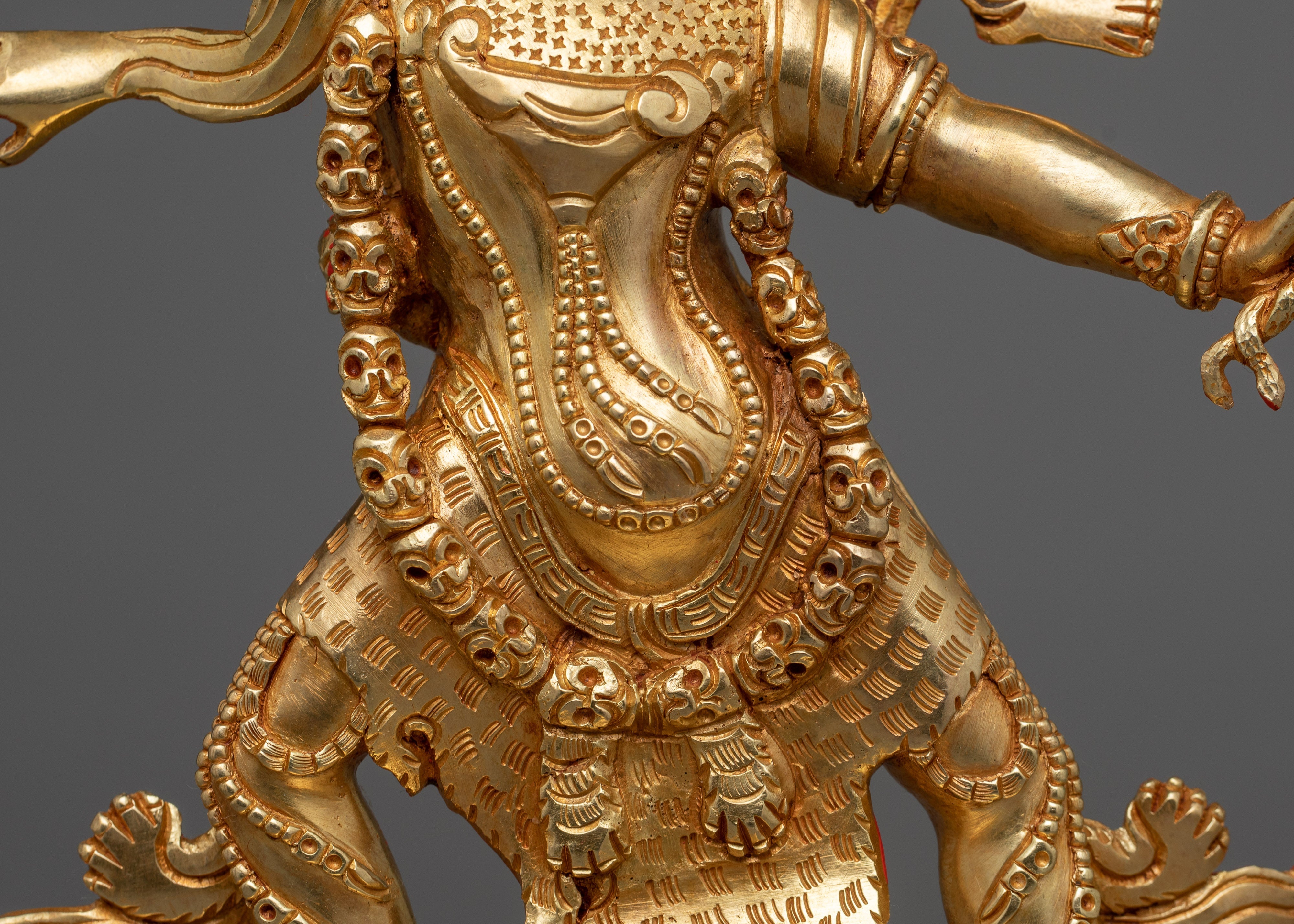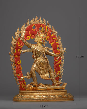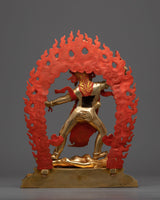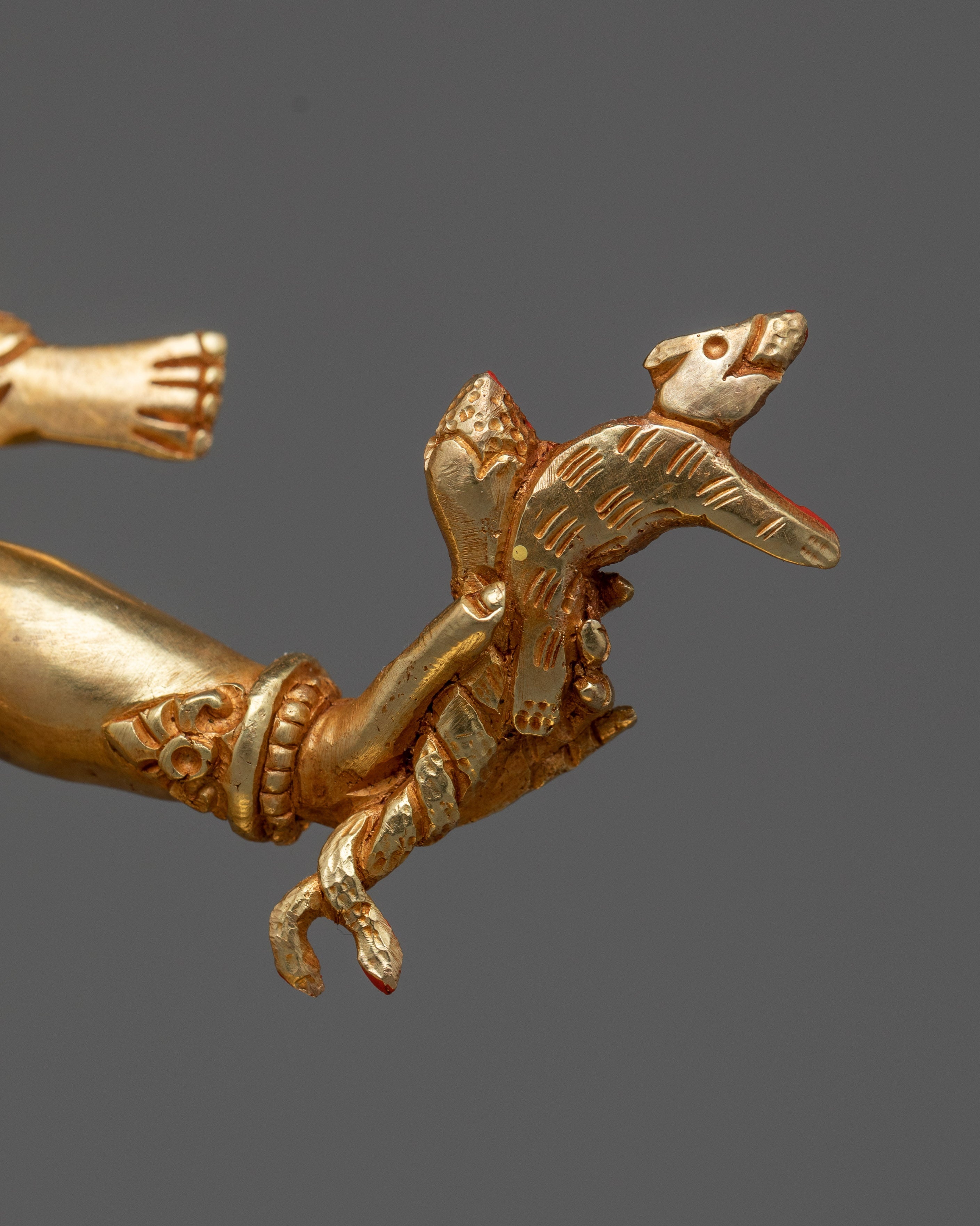 Introducing our Ekajati Gold Gilded Statue, the protector of wisdom and protection. This beautiful statue is 2.81 kg in weight, 13 inches tall, and has a solid base that is 9.8 inches in diameter. It commands attention in any area. It is made of high-quality materials, such as an elaborate acrylic painting and a copper body covered in beautiful 24K gold gilding. It radiates a sense of heavenly protection and ageless wisdom. The devotion and skill of the artists who brought this holy figure to life are evident in every little detail, from the elaborate decorations to the calm expression on the face.