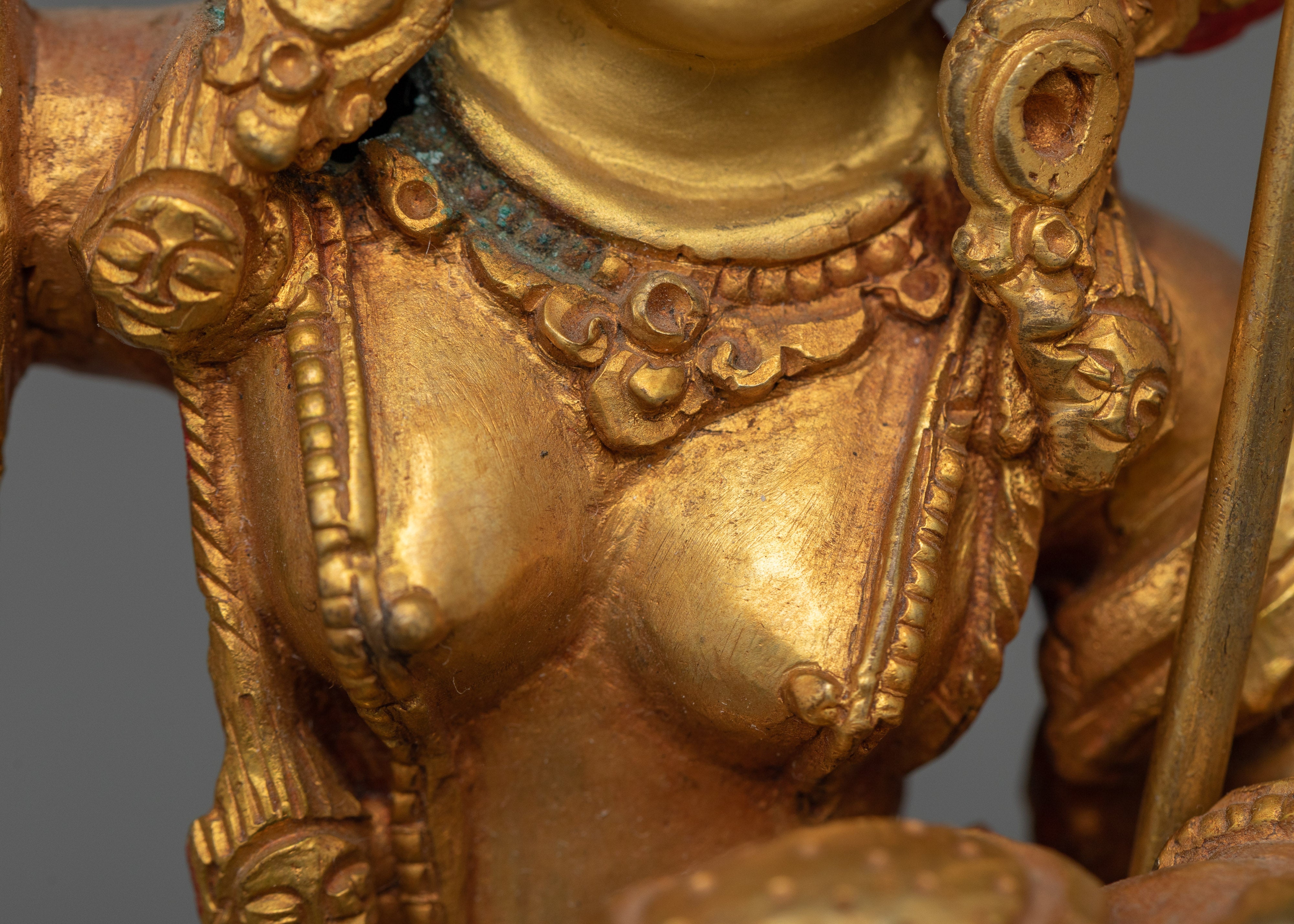 Everything about this statue, including the elaborate patterns on Ekajati's robes and the serious expression on her face, has been carefully made. The piece has been given depth and spiritual meaning by the craftspeople' precise attention to detail. In addition to signifying the sacredness of Ekajati, the gold gilding elevates the artists' skill. For those looking for a work of art that symbolizes spiritual strength and protection, this statue is perfect.