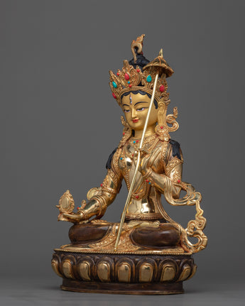 Sitatapatra, often known as the "White Parasol Goddess," is a strong yet merciful deity in Buddhist mythology. She embodies the transformational power of spiritual practice, bringing her worshippers protection and benefits. She shields her devotees from adversity with her thousand hands and a parasol, a sign of protection, fostering a zone of harmony and calm. Allow this statue to serve as a springboard to a deeper relationship with the enlightening qualities of Buddhist philosophy, cultivating a space of calm and wisdom in your surroundings.