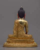 The statue shows Siddhartha Shakyamuni sitting in the mudra of the ground touching, which represents the moment he attained enlightenment beneath the Bodhi tree. The dhyana mudra, a gesture of meditation and inner calm, is used to hold his left hand on his lap. The detailed acrylic paints accentuate the tranquil look on the statue's face and the delicate patterns of his robes, adding to its attractiveness.