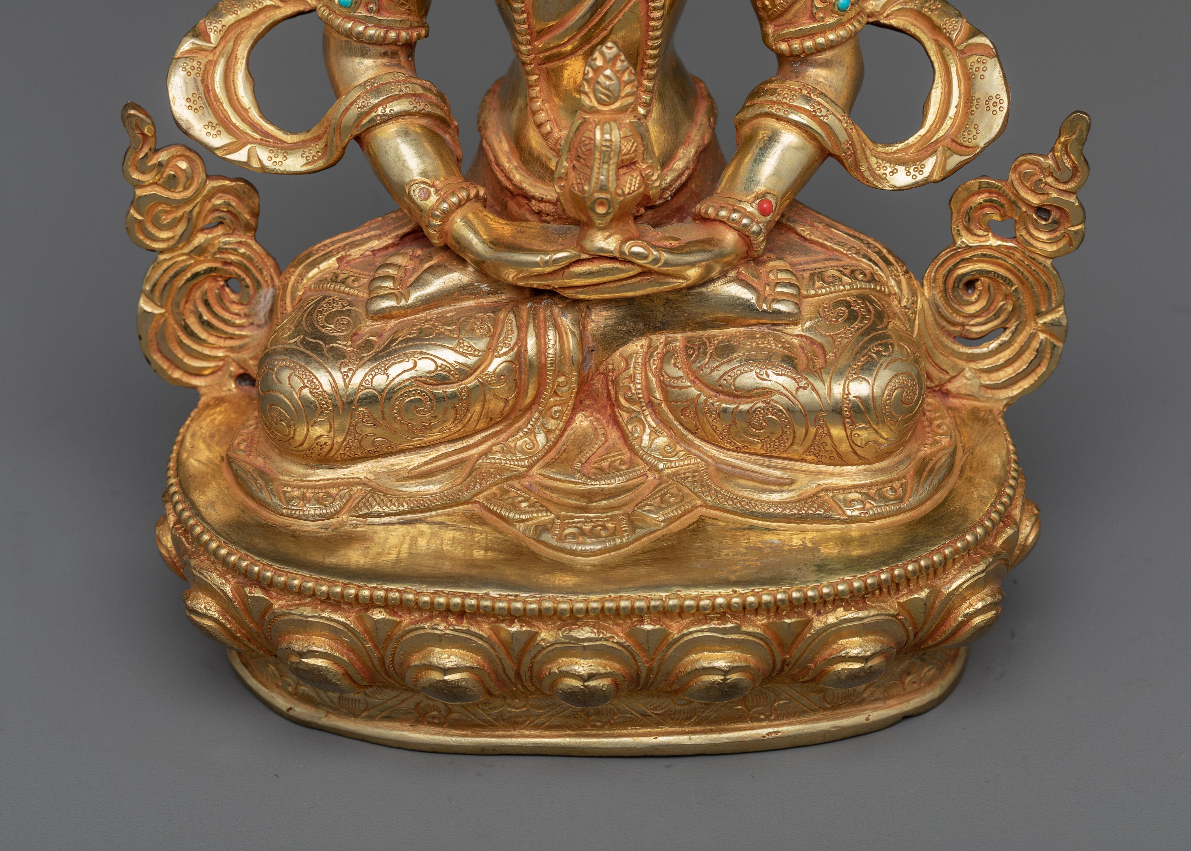 Crafted in Pure Copper and Drenched in 24k Gold, the Guru Amitayus Statue