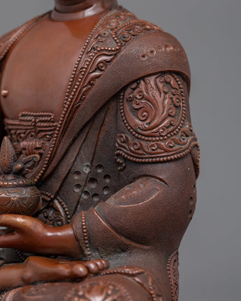 Enlightened Three Buddha Statue Set at 8.7"/22 cm tall captures the balance of enlightenment, wisdom, and compassion. The statues' ageless beauty is highlighted by their finely detailed copper craft and elaborate acrylic painting accents. With a combined weight of 5.04 kg, this set is a substantial addition to your altar or place of worship.